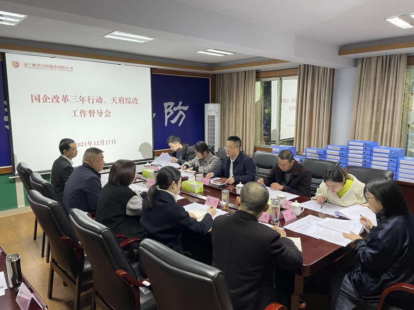 ? ? 12月17日,遂寧市國資委黨委委員、副主任陳伏龍一行到順邦安防公司督導國企改革三年行動、天府綜改相關工作。遂寧興業(yè)集團黨委委員、財務總監(jiān)何玫,順邦安防公司黨委書記、董事長、總經理唐清華,黨委副書記、監(jiān)事會主席廖芹,副總經理董奎、劉光連和公司全體中層干部參加督導會。